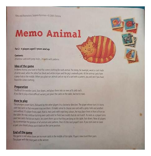 Find the correct clothing for each animal. Contents: 24 Nima cards with peep-holes, 24 cards with patterns.