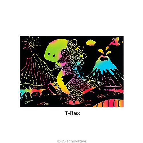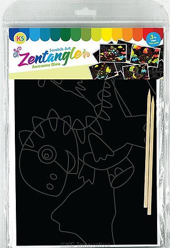 All new Tangle Art inspired Scratch Art for kids and adults alike with beautiful pre-drawn outlines of 4 types of dinosaurs - T-Rex, Triceratops, Stegosaurus and Brontosaurus! Fill up and complete the designs with various patterns - use your creativity in coming up with different doodles and see them appear in rainbow colours! This craft is great for relaxing young minds and for improving their visual skills as well. They are great for decoration so display your finished artwork with pride!