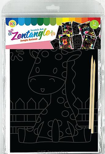 All new Tangle Art inspired Scratch Art for kids and adults alike with beautiful pre-drawn outlines of 4 types of jungle animal - Lion, Zebra, Giraffe and Elephant! Fill up and complete the designs with various patterns - use your creativity in coming up with different doodles and see them appear in rainbow colours! This craft is great for relaxing young minds and for improving their visual skills as well. They are great for decoration so display your finished artwork with pride!