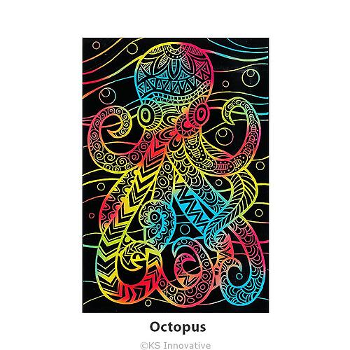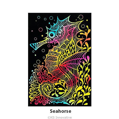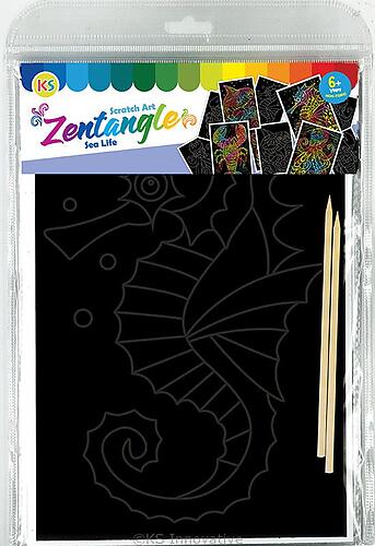 All new Tangle Art inspired Scratch Art for kids and adults alike with beautiful pre-drawn outlines of 4 types of sealife - Seahorse, Dolphin, Lobster and Octopus! Fill up and complete the designs with various patterns - use your creativity in coming up with different doodles and see them appear in rainbow colours! This craft is great for relaxing young minds and for improving their visual skills as well. They are great for decoration so display your finished artwork with pride!