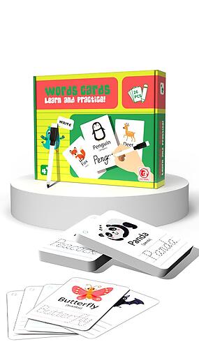 Introduce young learners to the world of words with Learn & Practise Words Cards! This set includes 26 cards, each featuring a different word and dotted lines for easy tracing. A perfect educational tool for developing word writing skills.